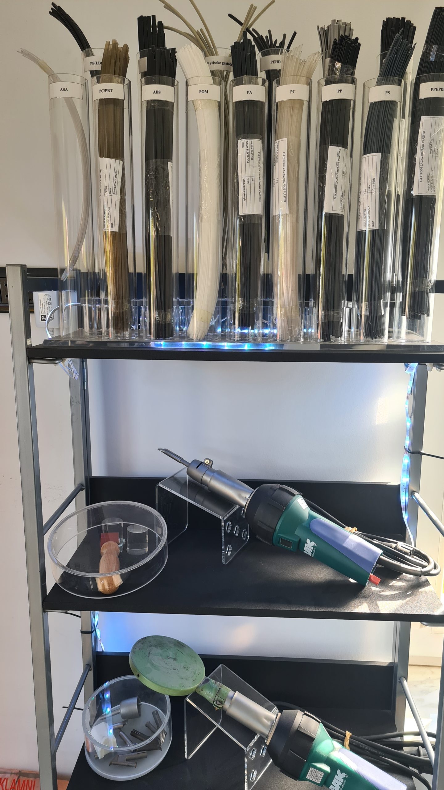 Naš asortiman uključuje, na primjer, strojeve s vrućim zrakom i vrućim klinom za zavarivanje raznih plastičnih brtvenih membrana, npr. na odlagalištima, na ravnim krovovima ili u izgradnji ribnjaka, stolove za grijanje i savijanje pleksiglasa, ekstrudere za ručno zavarivanje, strojeve za sučeono zavarivanje plastičnih ploča i cijevi kao i veliki izbor dodatne opreme poput svih vrsta mlaznica, tlačnih valjaka i strugača, kao i uređaja za rezanje stiropora, glodalica, strojeva za poliranje, grijaćih elemenata i još mnogo toga.